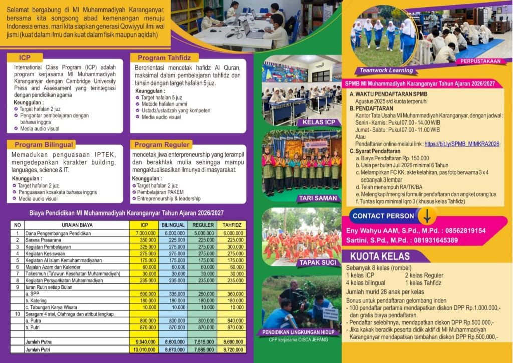 MI Muhammadiyah Karanganyar menawarkan berbagai program pendidikan yang dirancang untuk memfasilitasi perkembangan siswa. Setiap program memiliki fokus dan keunggulan tersendiri, memberikan pilihan sesuai dengan minat dan bakat siswa. Berikut adalah penjelasan mengenai masing-masing program: