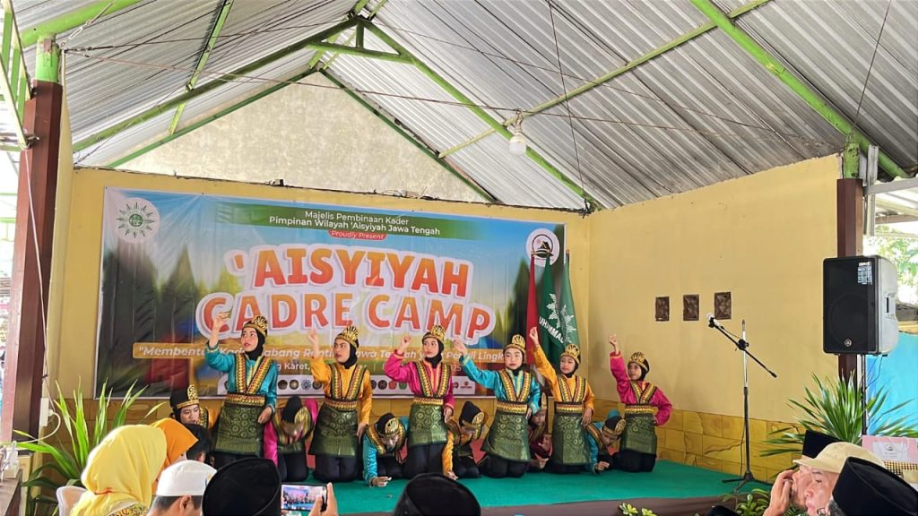 Tim Tari Saman MI Muhammadiyah Karanganyar tampil memukau dalam acara Pembukaan Kemah Aisyiyah Cadre Camp 2025 yang diselenggarakan di Kampung Karet, Ngargoyoso, pada Sabtu, 8 November 2025.